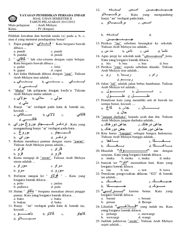 Soal Ujian Armel Semester Ii Kelas 6 2012 2013 Pdf from imgv2-2-f.scribdassets.com Check spelling or type a new query. Materi arab melayu kelas 6. Maybe you would like to learn more about one of these? We did not find results for: